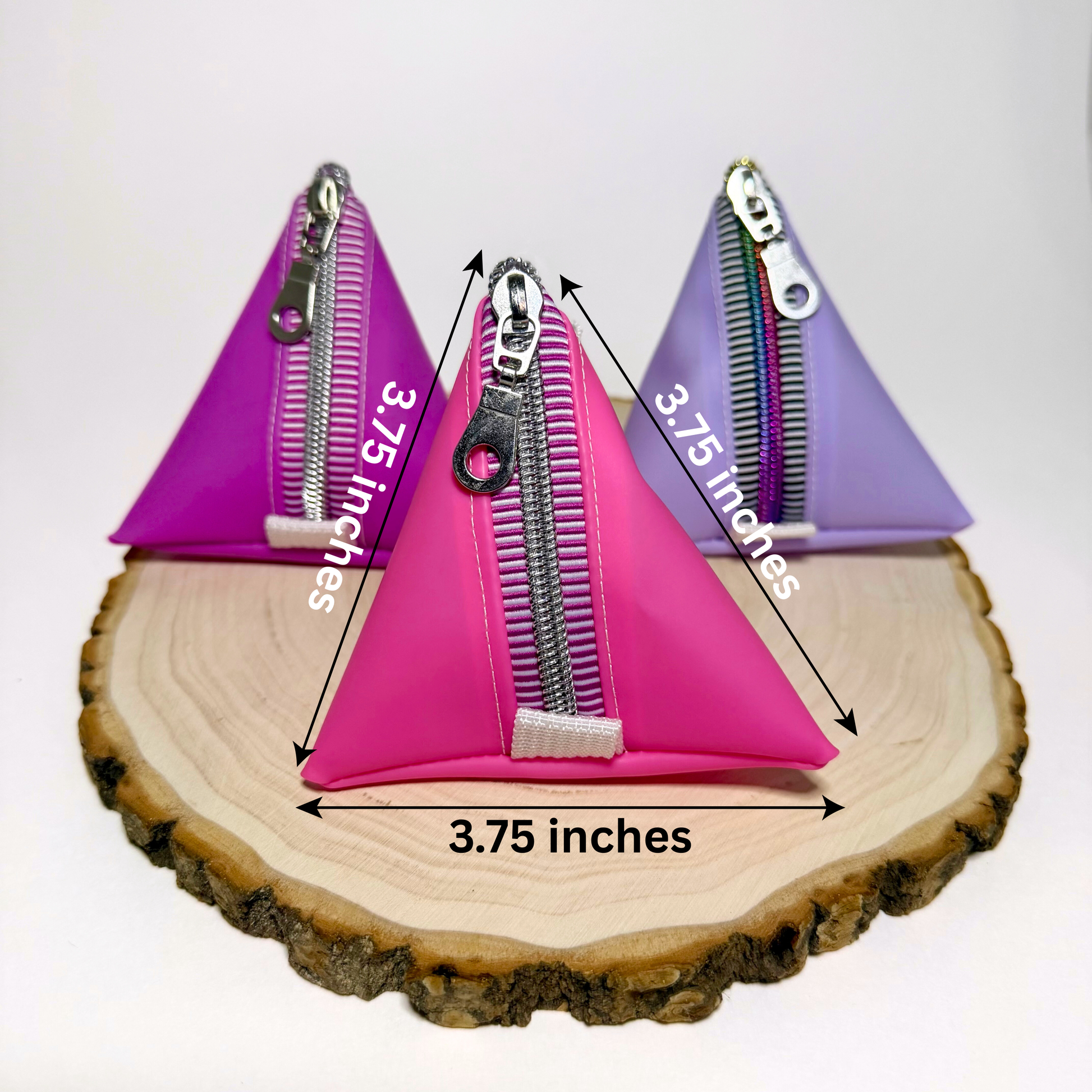 Tetrahedron shaped zipper coin purse for the fun geometry lover. Comes in 6 exciting neon colors!